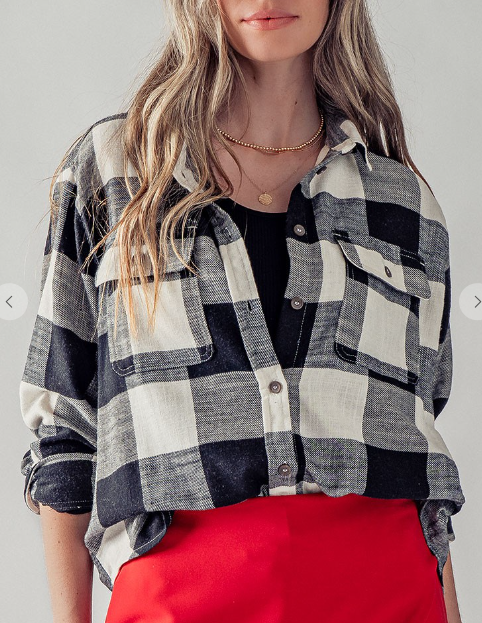 Black PLAID FLANNEL BUTTON DOWN SHIRT